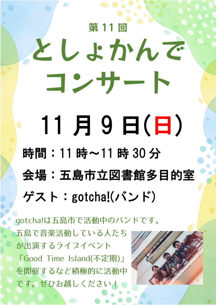 市内で活動するgotcha!さんによる、オリジナル曲を中心とした演奏です。