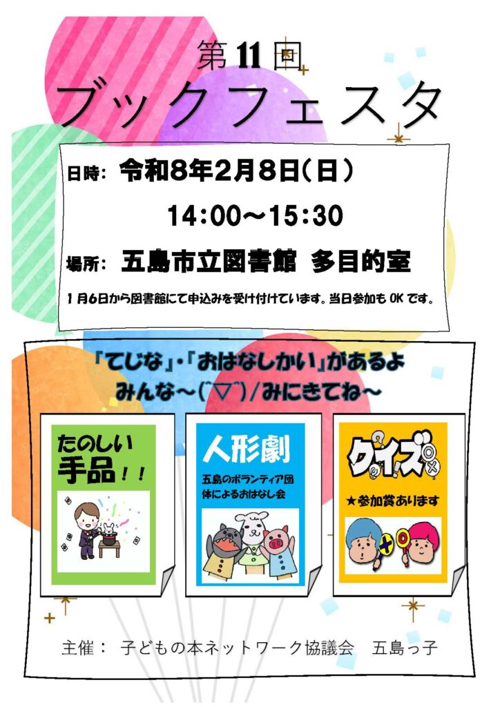 子どもの本ネットワーク協議会 五島っ子が主催のブックフェスタを開催します。